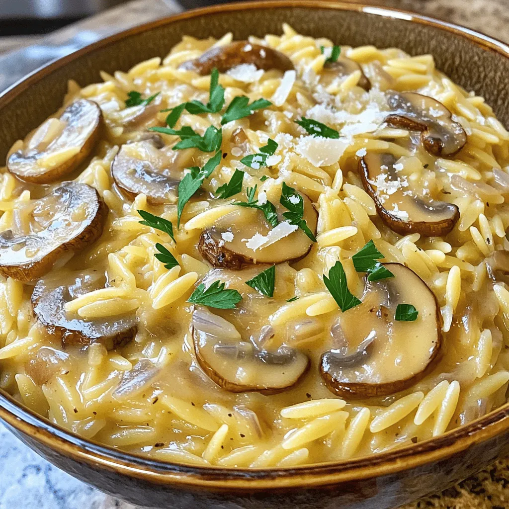 Orzo is a small, rice-shaped pasta. It is made from wheat and is often used in soups or salads. You can cook orzo like any other pasta. It absorbs flavors well, making it perfect for creamy dishes like this one. In our recipe, orzo acts as a base and soaks up the creamy mushroom sauce. This adds a nice texture and makes every bite delightful.