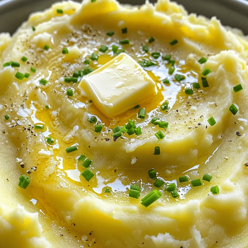 When serving, think about what pairs well. These mashed potatoes go great with meats like roast chicken or steak. They also complement fish dishes nicely. For a fun twist, use a piping bag to plate the potatoes. This method makes for a beautiful presentation. You can also serve them in a bowl with a sprinkle of chives on top for color and flair.