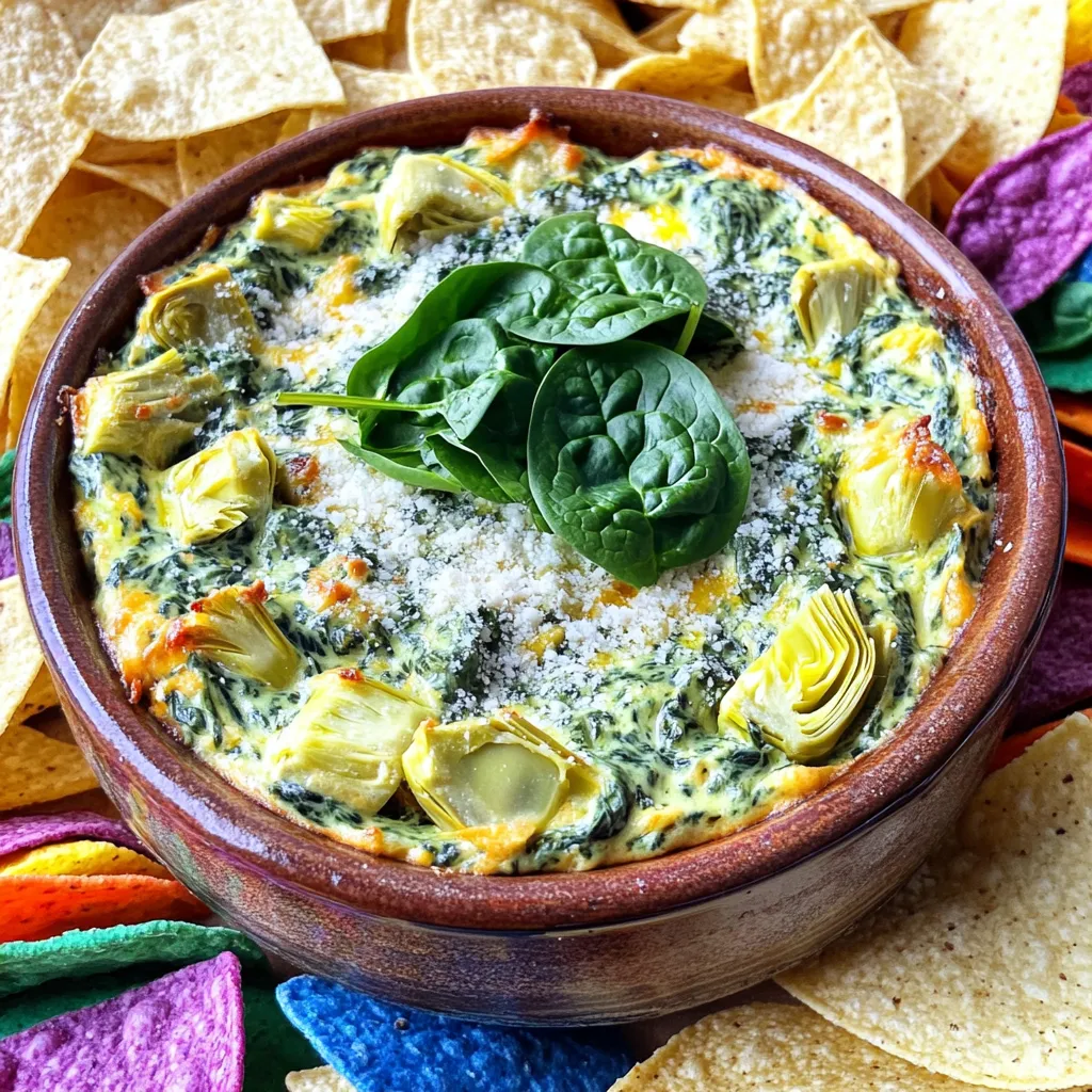 To make your dish look great, garnish it. A sprinkle of extra Parmesan cheese adds flair. Some fresh spinach leaves on top look nice too. Arrange your dippers around the dip for a colorful platter. This will make it fun and inviting for everyone!