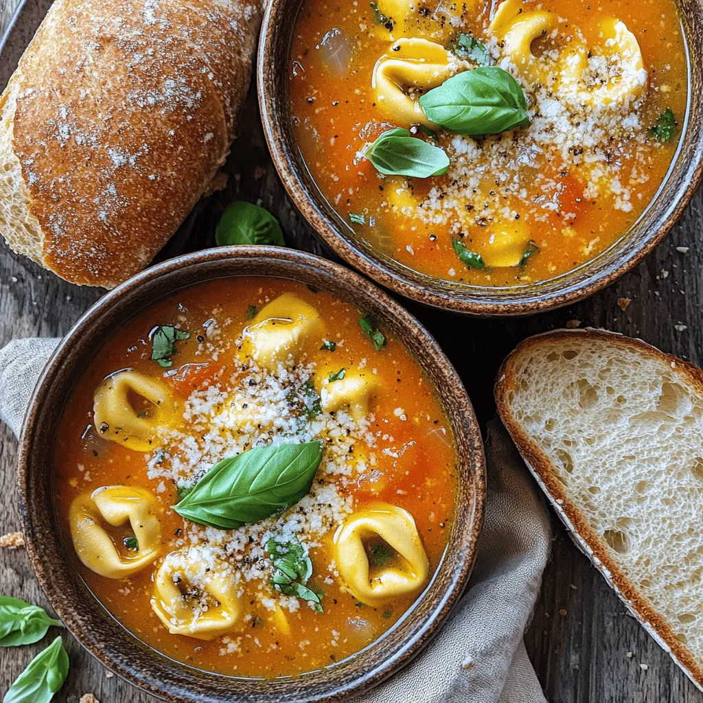 To make your soup shine, use fresh ingredients. Fresh basil brings bright flavor. Diced tomatoes with herbs add depth. A touch of sugar balances acidity from tomatoes. Adjust broth levels for thickness. For a creamier soup, use heavy cream. If you prefer a vegan option, coconut cream works well. Stir in the tortellini 30 minutes before serving. This keeps them tender and not mushy.