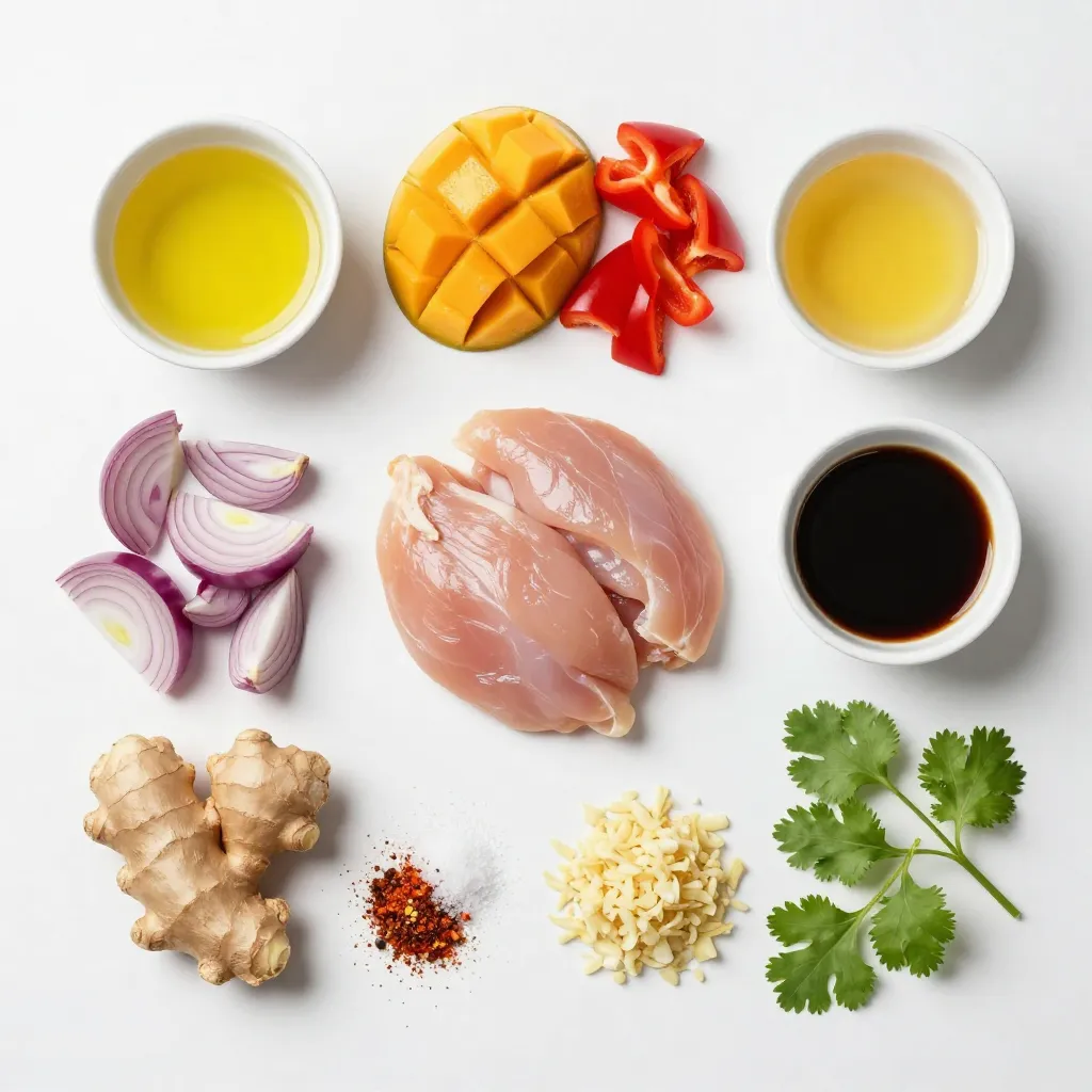 Using high-quality ingredients elevates the dish. Start with fresh boneless chicken thighs for juicy meat. The ripe mango adds sweetness and a tropical touch. Red bell pepper brings crunch and color. Red onion adds a savory bite. For the marinade, use extra virgin olive oil for rich flavor. Honey balances the heat. Soy sauce adds umami. Fresh garlic and ginger provide depth. Adjust cayenne to your heat level. Don’t skip the salt and pepper; they enhance all the flavors.
