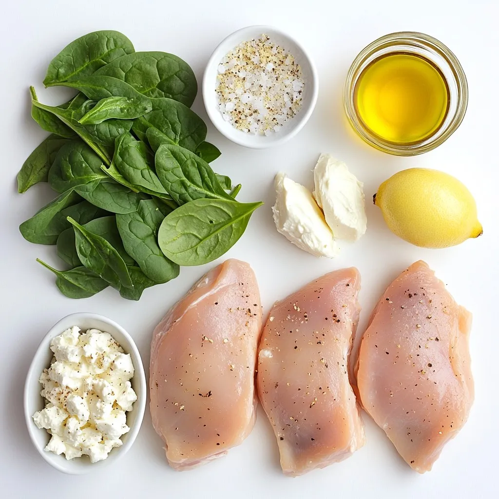 Start by preheating your oven to 375°F (190°C). This step is key for even cooking. While the oven heats, gather your ingredients. You will need chicken breasts, fresh spinach, feta cheese, cream cheese, garlic, olive oil, dried oregano, lemon zest, salt, and pepper.
