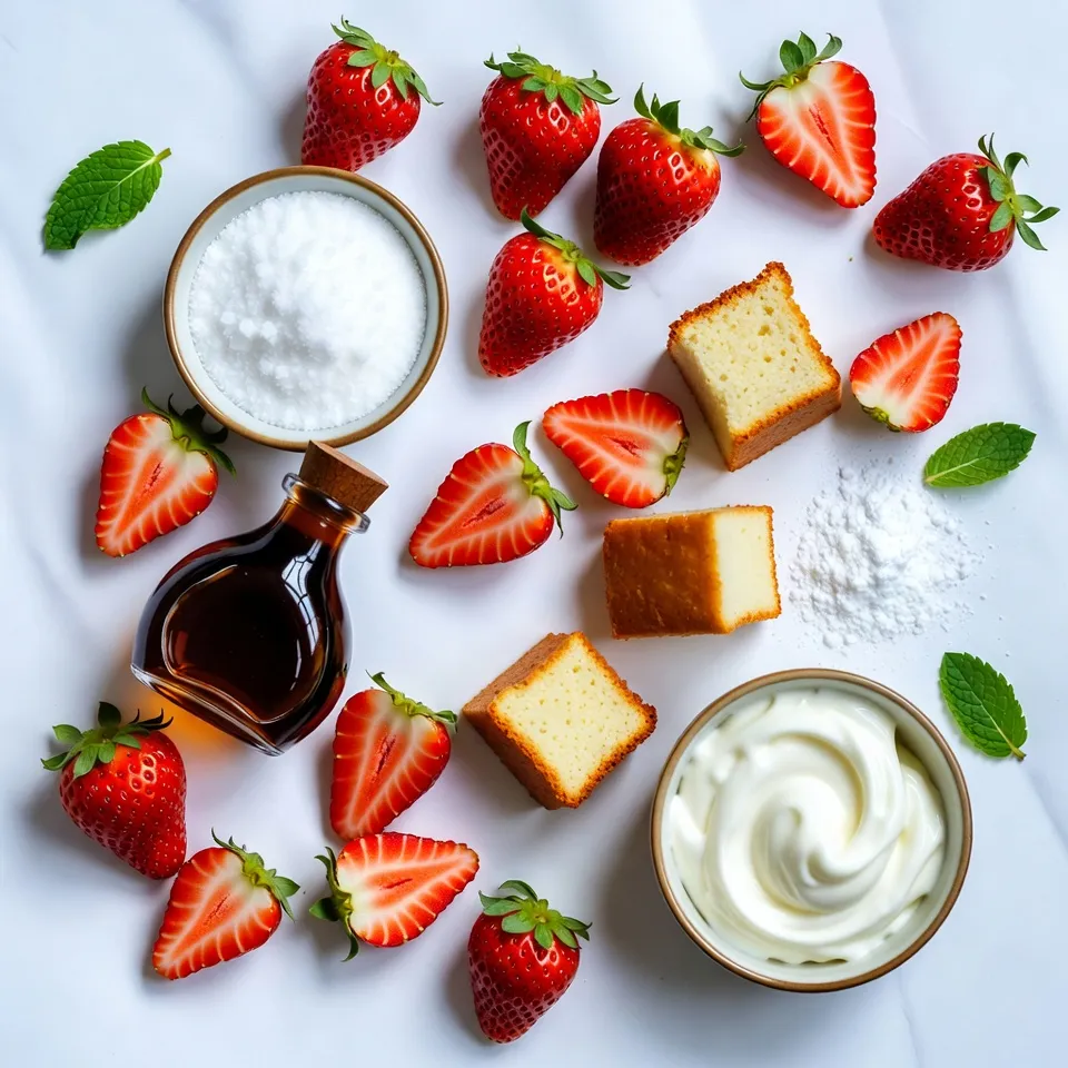 Delicious layers of pound cake, macerated strawberries, and whipped cream served in individual cups.