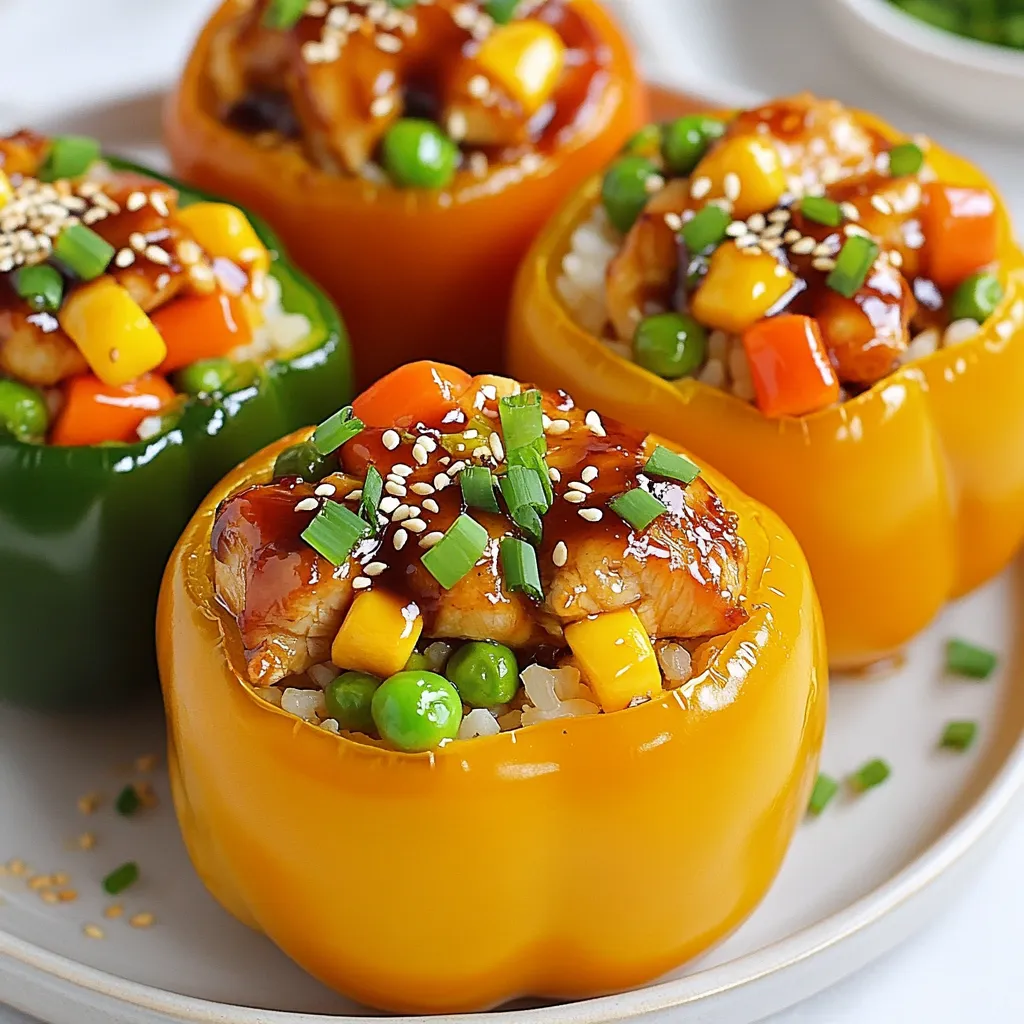 For a stunning presentation, use a colorful platter. Place the stuffed peppers upright to show off their filling. Drizzle extra teriyaki sauce over the top for added flavor. Garnish with sliced green onions and sesame seeds. This adds color and texture. Pair your stuffed peppers with a simple salad for a complete meal. Enjoy the balance of flavors and textures on your plate!