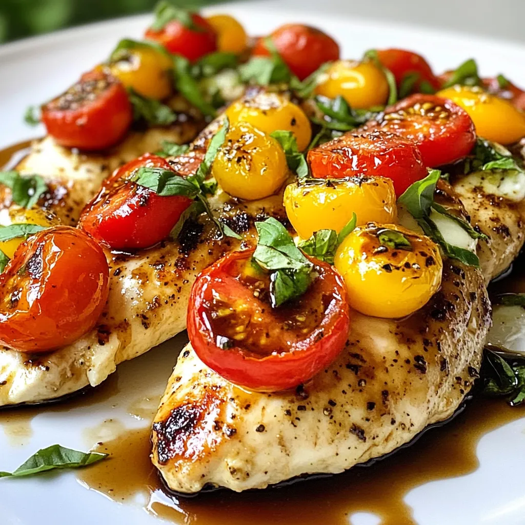 Scatter the halved cherry tomatoes over the chicken. Then, layer the fresh mozzarella slices on top. This creates a creamy layer that melts perfectly. Sprinkle the chopped basil over everything, adding a fresh burst of flavor.