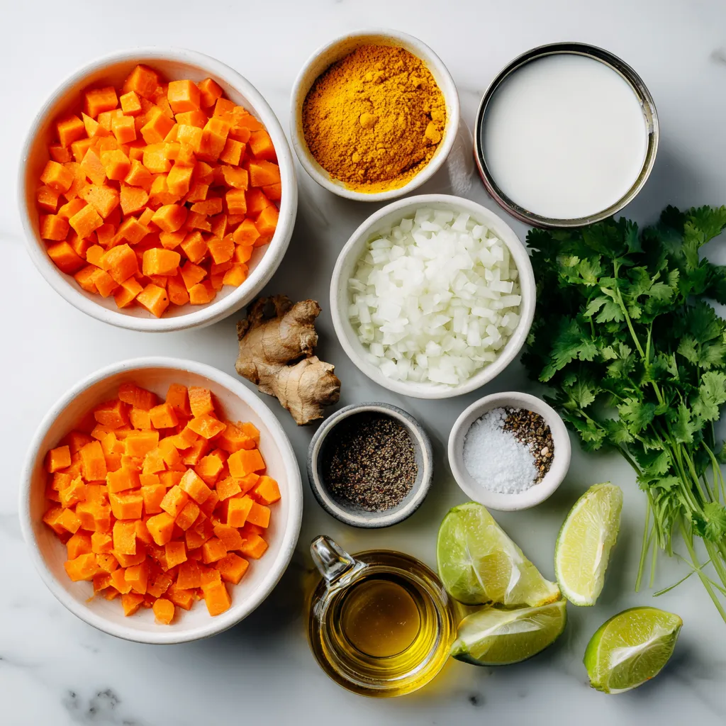 These main ingredients form the heart of the soup. The carrots offer sweetness and color. Onions and garlic add depth and flavor. Fresh ginger and turmeric bring warmth and health benefits. Vegetable broth gives a rich base, while coconut milk adds creaminess.