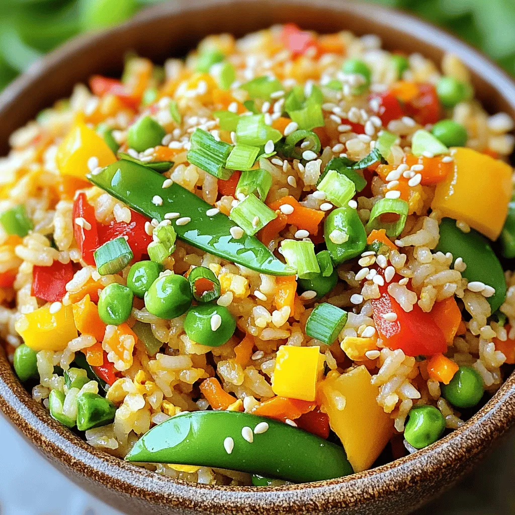 The key to a great Veggie Loaded Fried Rice is fresh, colorful ingredients. I love using day-old jasmine rice for this dish. The rice grains stay separate, which helps the dish not become mushy. For the veggies, I choose a mix of bell peppers, carrots, and snow peas. These add color and crunch.