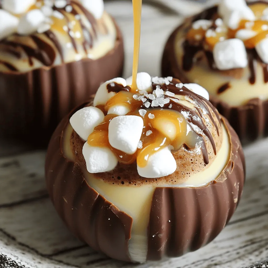 Warm Salted Caramel Hot Cocoa Bombs need a few key ingredients. First, you’ll use semi-sweet chocolate chips for the rich base. Milk chocolate chips add sweetness and creaminess. Cocoa powder gives your drink that classic cocoa taste. Mini marshmallows bring fun and fluff. Salted caramel sauce adds a sweet, salty twist that makes this treat special.