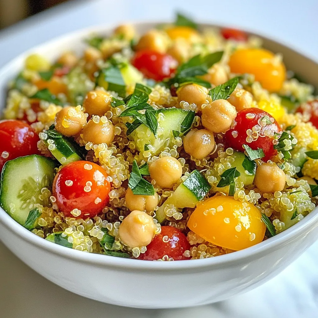 - Nutritious and Filling: Packed with protein from quinoa and chickpeas, this salad is both healthy and satisfying, keeping you full longer.